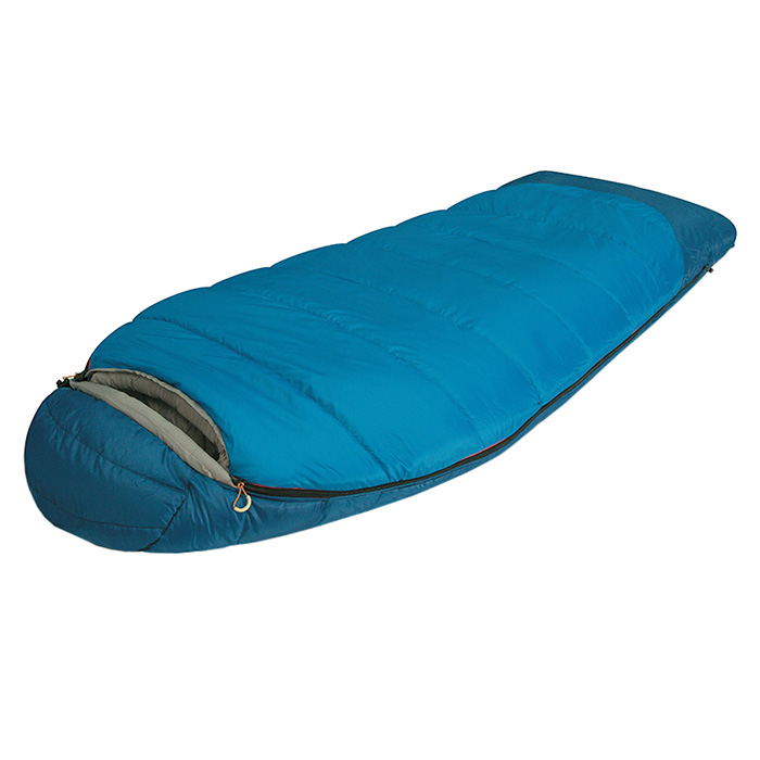 Спальный мешок предназначен для низких температур до -20 С. Он имеет широкий верх и зауженный низ и повторяет анатомическое строение человека. Спальник плотно прилегает к телу и не выпускает тепло.